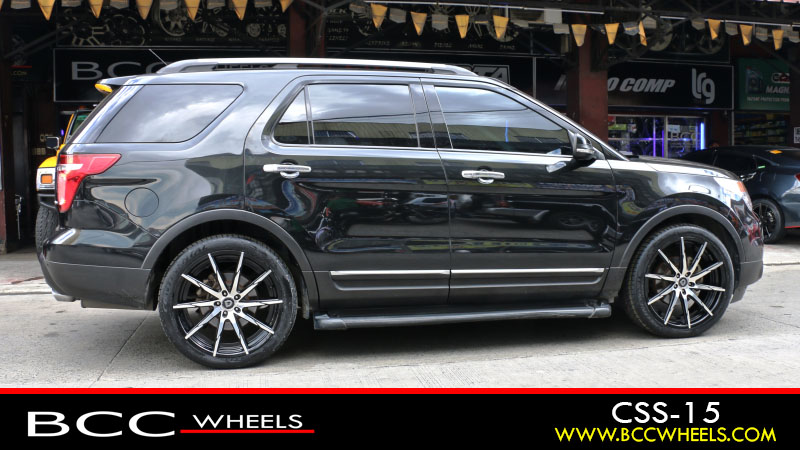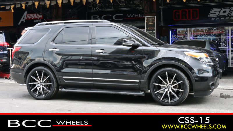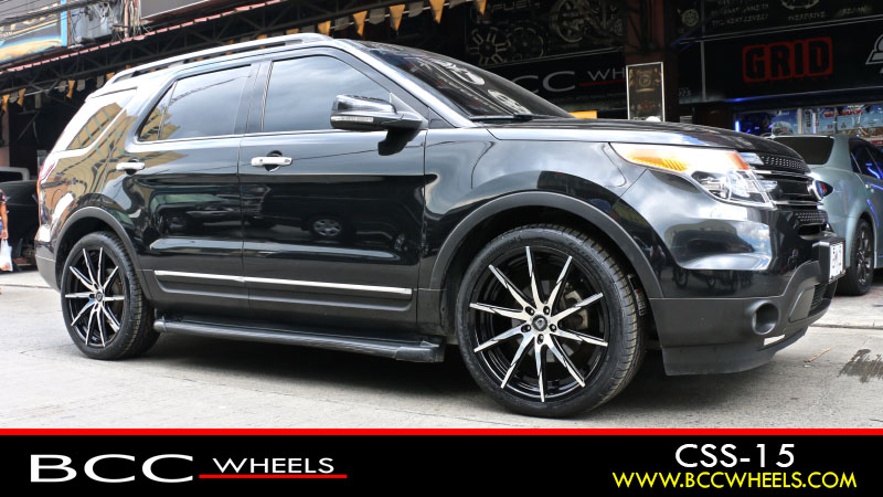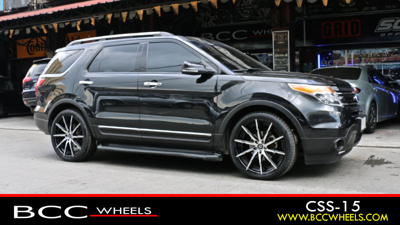 Ford Explorer with 22 x 9 Inch | Lexani Wheels | CSS 15 | Gloss Black Machined | Continental Tires