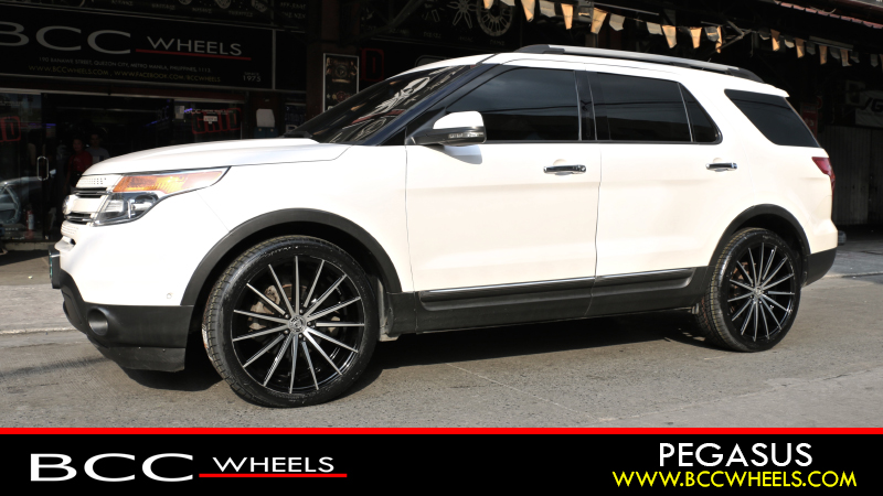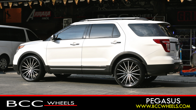 Ford Explorer with 22 x 9 Inch | Lexani Wheels | Pegasus | Gloss Black Machined | Continental Tires